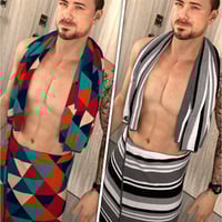- SU Shower Towel Short - 08 Red Shades Grunge Stripes