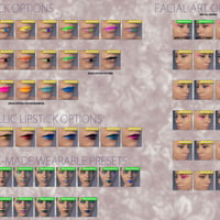 All makeup options make use of bump maps to ensure beautiful, high-quality detail. These makeups are inspired by tropical fish, and like their inspiration, are unique, bright and vibrant.