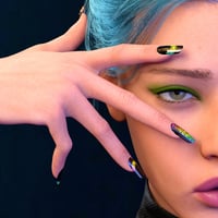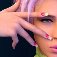 There are classic, gradient, iridescent, blue, red, green tinted nails, butterflies, summer fruits, Chinese porcelain, summer flowers, and graphic elements to apply to your nails. You can fit your nails to almost any look in your renders.