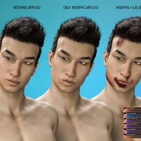 Face Bruises Morphs for Genesis 3 & 8 Male(s) is a pack of morphs that work as an add-on for the "L.I.E. Face Bruises for Genesis 3 & Genesis 8". The morphs allow users to swell a character's face via a set of 53 morph dials which should correspond with 53 of the 59 LIE presets from the base product.