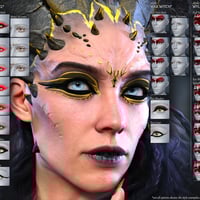 From classic beauty looks to intricate fantasy-inspired designs and primal smears and splatters, this set offers endless creative possibilities. Built on layered geoshells, these makeups preserve the original skin texture of your Genesis 9 character while allowing for complete customization of colors and blending of various elements.
