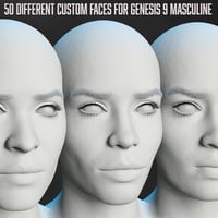 Face Off is huge set of 50 Pre Made Custom Faces for Genesis 9 Masculine.