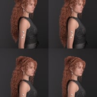 Seven adjustment morphs are included to control the overall hair length, bangs length, size of the bun, hair thickness, and pull the hair behind ears.