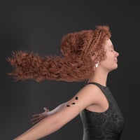The Hair has a skeleton rig that allows you to pose different parts the way you please. The controlled parts are the freefalling hair in 7 separate clumps, front bangs in 3 clumps, and side bangs in left and right clumps.
