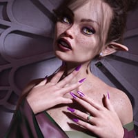 This new character for Daisy 8 and Genesis 8 Female will be a valuable addition to your Library, especially with 8 Eye, Lip, Nail, and Eyeshadow Colors with resets, and 6 Bonus Fantasy Makeups that make her look stunning.