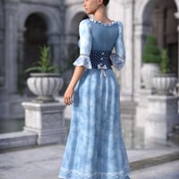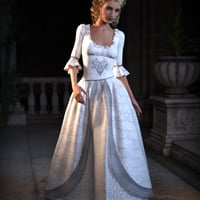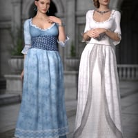 The set includes a dress, an overskirt, a bodice and shoes. The skirts of dress and overskirt feature 24 rigged areas each for maximum possibility. In addition you get three leg poses with matching skirt morphs.