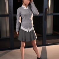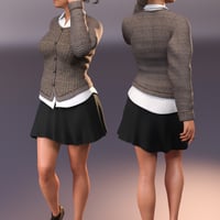 This Fall Casual Outfit for Genesis 8 Female(s) includes a Cardigan, Shirt, Skirt and Short Boots.