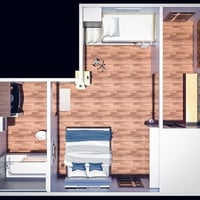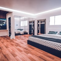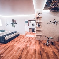 This indoor environment makes a great space for building a better relationship with each member. This room includes a bed for the parents and bunk beds for their kids, plus a wide space that's good for play and offers the family more room for their belongings.
