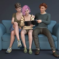 A Family of Three spends quality time together with this set of poses for Genesis 8. Gather Genesis 8 Female and Male and Teen Jane 8 around the television, the tablet, or the game board for a day of fun family recreation.