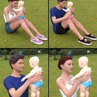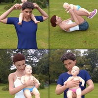 This set comes with 15 poses for Caryn, 15 poses for Tobyn with their parents, Genesis 8 Female and Male.