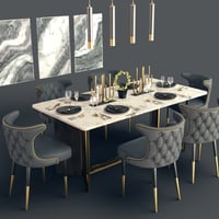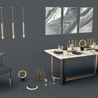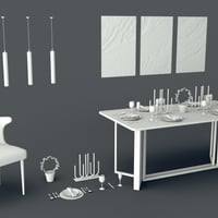 It includes a stylish Diner Table, Diner chair, wall painting deco, glasses, table wares, and other decoration props. All are ready to render in Iray.