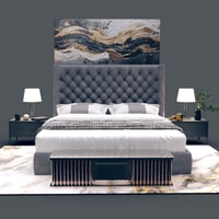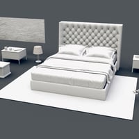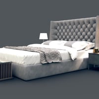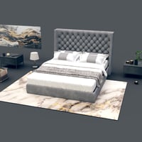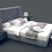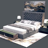 It includes a stylish King size bed, pillow, blanket, nightstand, table lamp, bend bench, and other props. All are ready to render in Iray.