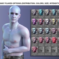 Once the base skin is set up, you can, if you want, customize your fantasy characters in very unique and characteristic ways using the additional Top Coat options (two additional topcoat layers are included), Flakes options, Eyes options, and Nails options. Additional tools allow you to transfer skin settings to any geograft element including Anatomical Elements.