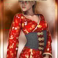 Get a taste of the Orient in this asian-inspired outfit for Vicky 4. This 4-piece set comes with a straw hat, shirt, and two skirts. The skirts have several movement morphs, and all of the pieces have several full body morphs, and all applicable CrossDresser adjustment morphs for easy posing.