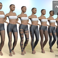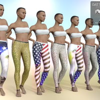 Fashion Leggings is a conforming leggings for Genesis 3 Female(s) with many texturing options: 16 surface groups, 32 diffuses, 8 transparency and 3 fabric surface shaders for compose your own textures. 21 pre-loaded materials are included too.