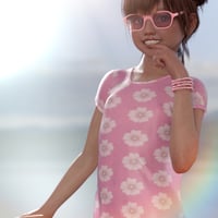The included sunglasses have a young and fun style and work well with the hairstyle. A morph is included on the glasses to have them posed on the top of the head. Morphs are also included on the hair to fit the glasses naturally.
