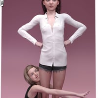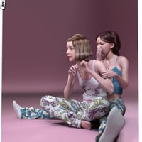 Going back a few years, this is Lyra and her little sister Faye in their tween/teen years! Custom skins and custom morphs, no merchant resources were used. Young Lyra uses a slightly edited skin of Lyra, Faye uses a more strongly edited one with a different face, chest, navel, knees, feet and other small details. Various corrective morphs make sure that the young girls bend properly, including a bonus one for the foot bend to achieve a more natural ballet/dancer type of foot. Clothing fix morphs for chest, sternum, vertebrae and crotch are at your disposal for a better fit to these adolescent shapes. 4 iris colors and a preset for flushed cheeks provide some variety. Materials are Iray only.