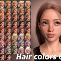 It includes 60 hair colors, 7 hair presets, and 26 adjustment morphs.