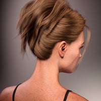 FE Princess Whiskers Updo Hair for Genesis 9 is a casual, messy high updo hairstyle.