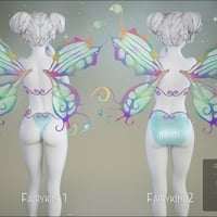 A cute Fairykini, complete with shimmery wings! The Fairykini comes with two bikini tops and two bikini bottoms to fit whatever style you need!
