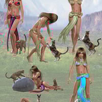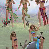 Fun, flirty, and frolicsome poses for V4 and MilCat to bring out their felinicity. With matching poses for the Felinicity outfit, these are just purrfect for your next fantasy render!