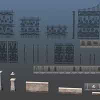 There is a kit forged fence with stone pillars in this set. The fence is presented in three altitude variants and is divided into separate constituent elements: pillars, walls, llattices, supports for doors and gates, doors and gates. Several variants of ivy have been created for each altitude variant.