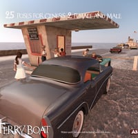 Add-on Ferry Boat, poses of life style on Ferry Boat, boarding on the pontoon and ticket booth on wharf. 25 poses for Genesis 2 (Male and Female)