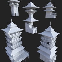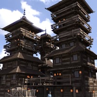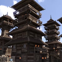 Feudal Japanese Towers 2 is a collection of 5 more imposing wooden structures for all your Japanese medieval period scenes.