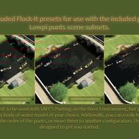 - 3 pose presets for Flock-It to be used with the Pre-loaded Punt Scene Subsets to arrange the punts in different configurations for the TAFF Punting on the River environment - or any other large body of water environment of your choice.