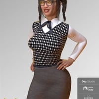 This shirt, skirt, vest and glasses combination outfit comes with tons of supported shapes and 3 separate materials sets.