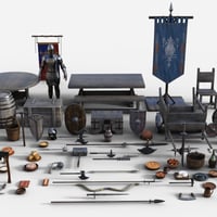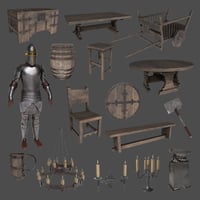Over 80 detailed medieval props to choose from and lots of weapons and furniture.