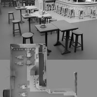 This authentic environment comes with tons of great props like Beer Stein and Glasses, Bottles (in seven varieties!), Pretzel and Pretzel stand, Badges, Stools, Dining Tables and Stools, Lamp and more.