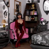 A 3 Piece romantic gothic out fit, Has two colors to choose from, both red and black. Natural undress and movement morphs.