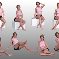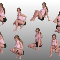 A collection of 25 detailed sitting and bending poses with mirrors and partials adjusted for Genesis 8 Female, and Genesis 9 Feminine.