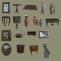 This environment is a main room of an old house designed to look creepy and scary in moody low light. There are a collection of props to add detail to the setting.