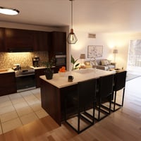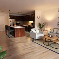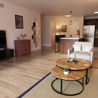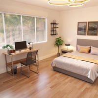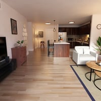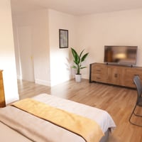 The FG Standard Apartment is an open floor plan complete with a laundry room, bathroom, two closets, and one bedroom.