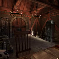 A dark moody room where the wizards contemplate the magic arts.