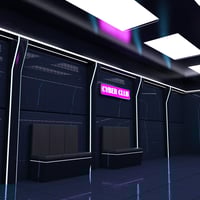 FH Cyber Entrance is a sci-fi interior scene with sliding doors, seating, plants, and signs that load as a full scene preloaded with cameras.