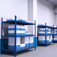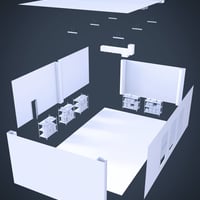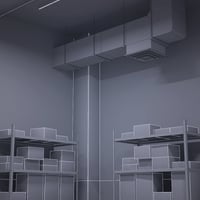The Warehouse Room features a clean business interior scene with a pose-able door and windows.