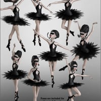 It consists of a conforming bodice with neck feathers, a tutu with feather layers, 65° ballet shoes and swan tiara. Additionally you will get 8 high quality ballet poses for Genesis 2 Female(s) that come with versions for the Genesis 2 Female base shape and Fiends Forever bodyshape.