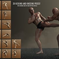 - 28 Kicking and kneeing poses. Straight kick, side kick, lateral kick, hammer kick, round house, or flying kick. Whatever kind of kick you need the base for, you'll probably find it here.