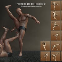 Fight Lab is a suite of base poses and expressions for Genesis 8 male, designed to streamline the creation of fight scenes. Consisting of eight individual pose collections, each complimenting the others, Fight Lab allows the practiced 3D artist to skip the tedious aspects of initial character posing, and jump straight to the fine tuning and rendering, in just a few clicks. Choose from a massive selection of over 160 meticulously crafted poses (and 135 mirrors!), or create your own by mixing the 540 partials. Don't like the hands? Swap them out from a collection of 63 different choices. Don't want to spend hours trying to get just the right facial expression? There are over 20 included.