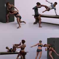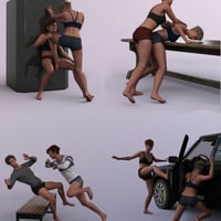 Whether you want to vault over a table to kick your opponent, slam them into the wall or cleverly trip them with furniture Fighting In Tight Spaces Poses for Genesis 9, 8.1 and 8 gives you the tools you need to get the job done.