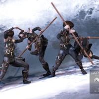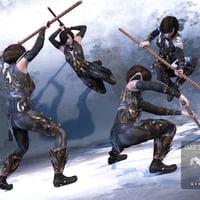 The Fighting Series: Staff Arts allows you to take full advantage of the staff. With 30 single stance HPP poses, 11 two-person vignettes HPP poses, and 1 three-person vignette HPP pose, this set with the included wearable staff preset, will satisfy all your staffing needs. As a bonus, included are identical standard pose versions of these poses for you to use on your own staffs, staves, and pole arms. Just a little tweaking of the right and left hands, and you are good to go.