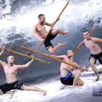 The Fighting Series: Staff Arts allows you to take full advantage of the staff. With 30 single stance HPP poses, 11 two-person vignettes HPP poses, and 1 three-person vignette HPP pose, this set with the included wearable staff preset, will satisfy all your staffing needs. As a bonus, included are identical standard pose versions of these poses for you to use on your own staffs, staves, and pole arms. Just a little tweaking of the right and left hands, and you are good to go.