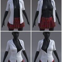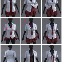 Flirty School Uniform is a 5 piece school outfit that includes Shirt, Skirt, Tie, Socks and Shoes. The set comes with a number of undress morphs.