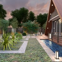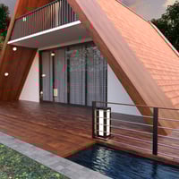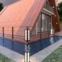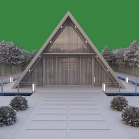 Discover the Floating A Frame House, a modern architectural retreat designed to bring serenity and style to your 3D scenes.