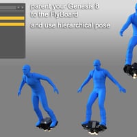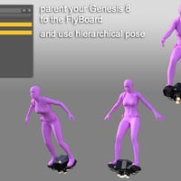 FlyBoard is ideal for your sci-fi scenes. 8 Basic Hierarchical Poses for Genesis 8 are provided to make your poses easier.