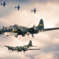 Flying Fortress warplane is a nod to the B-17 used extensively in World War II. Impeccably modeled this piece has all of the details on the actual warplane along with all of the actual planes movements. All of the exterior flight controls move the same amount as in real life, there's even a realistic cockpit instrument panel. The landing gear extends and retracts through a singular dial along with all of the ailerons, rudder, flaps and elevator. Propeller blurs can be applied that automatically hide the original props, also the bomb bay doors open and bombs drop out of the belly of the plane. Moveable guns consist of the nose, top, belly and tail that come with poses along with pilot and co-pilot for the Genesis 8 figures.