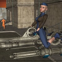 The GearGun is a very light and mobile personal aircraft. It is however, heavily armed. It can be used for many things. Guarding prison transports. Stop riots. Protect ground forces.
